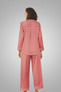 Comfortable Red & White Striped Women's Pajama Set – Long Sleeve Loungewear