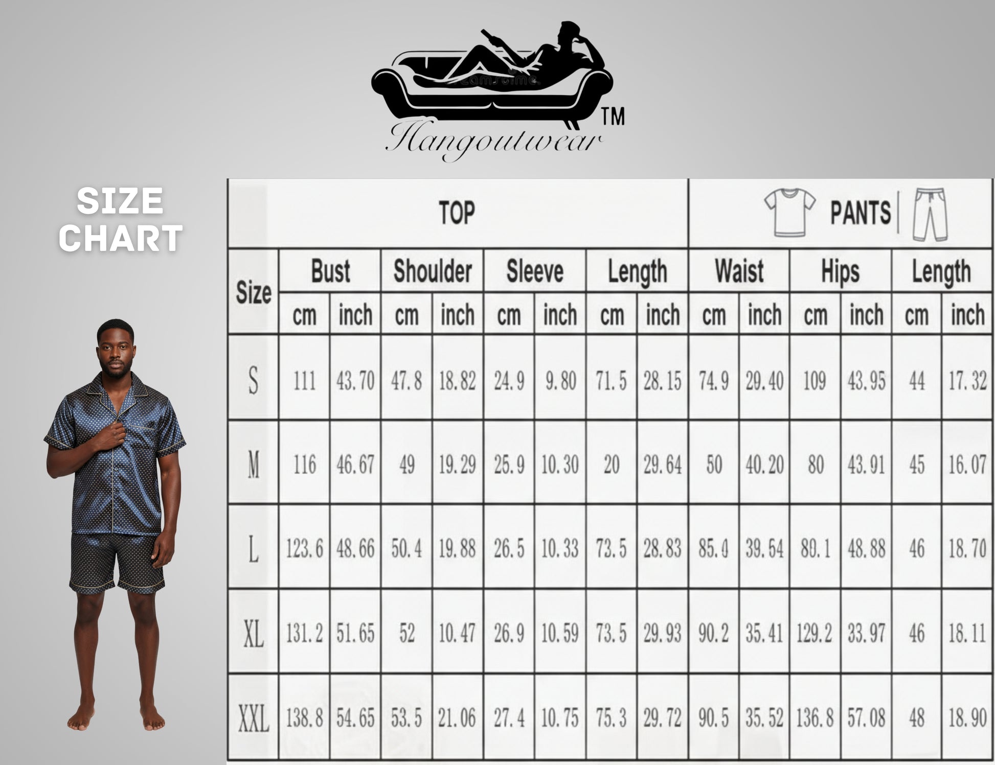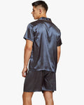 Men's (Banky’s) Favorite Silk/Satin Pajama Set Short Sleeve-Navy and Golden Diamond