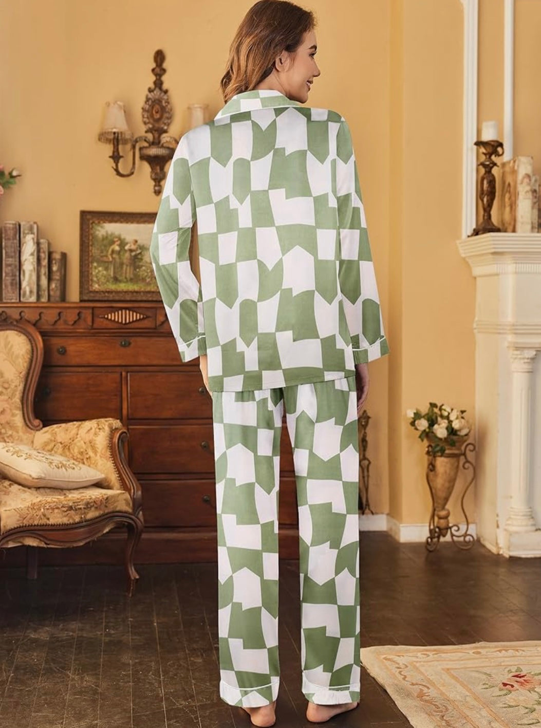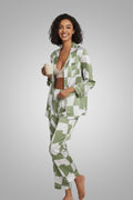 - Trendy Abstract Checkerboard Pattern: Elevate your style with our chic and modern designs featuring abstract checkerboard decor around the pajamas sets. This simple yet stylish detail adds a touch of sophistication to your look.