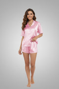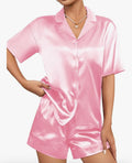 Womens Silk Satin Pajamas Set Short Sleeve